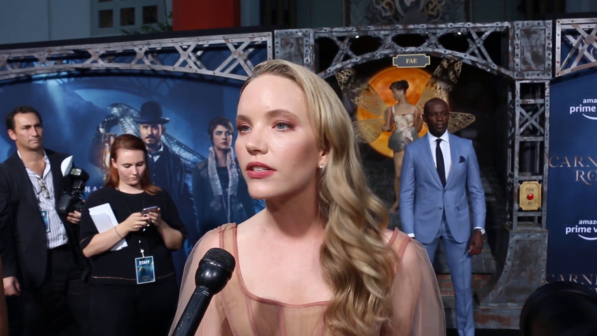 | Home > Screencaptures > TinseltownTV - Tamzin Talks Imogen at 'Carnival Row' Premiere |