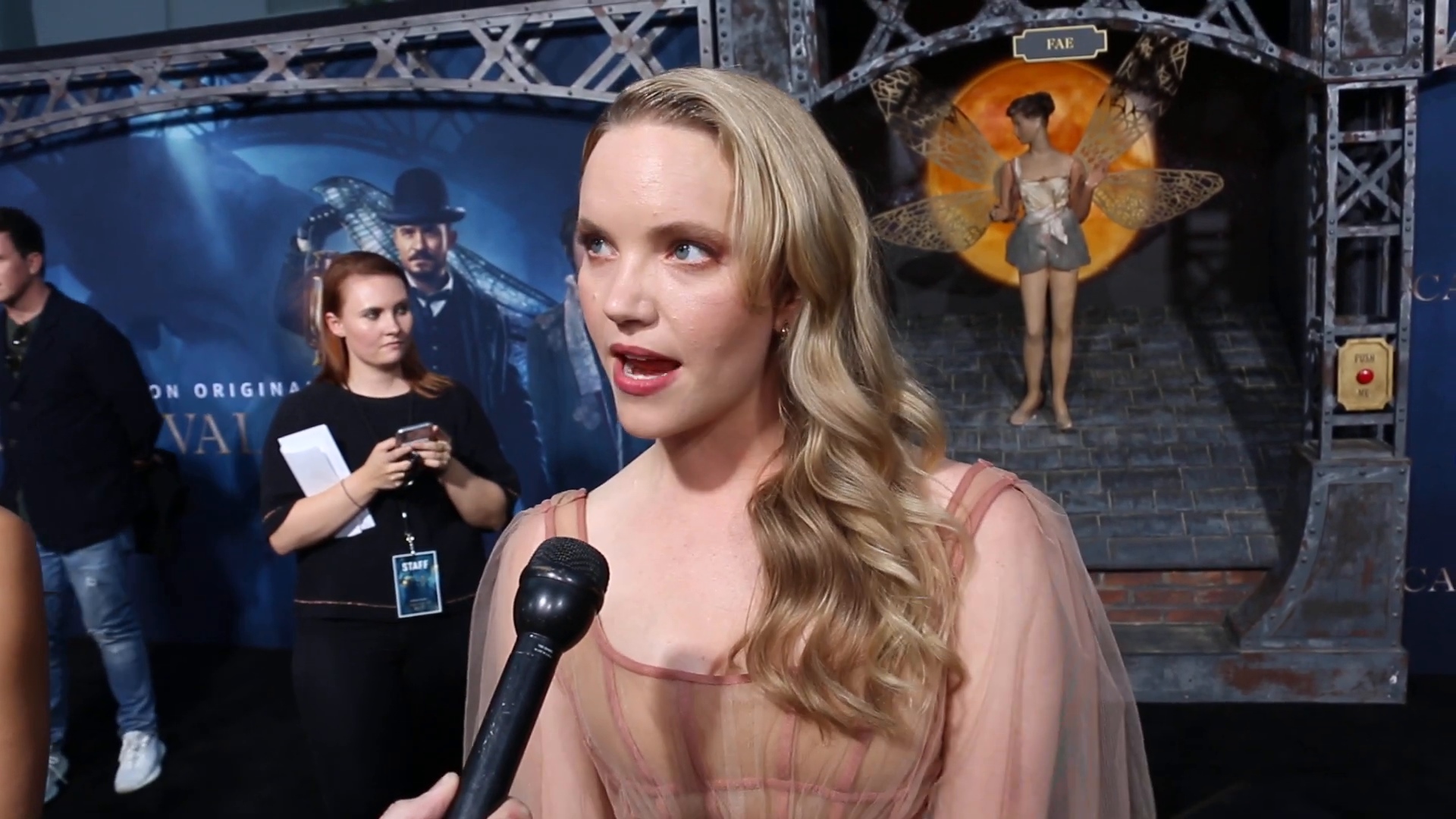 | Home > Screencaptures > TinseltownTV - Tamzin Talks Imogen at 'Carnival Row' Premiere |