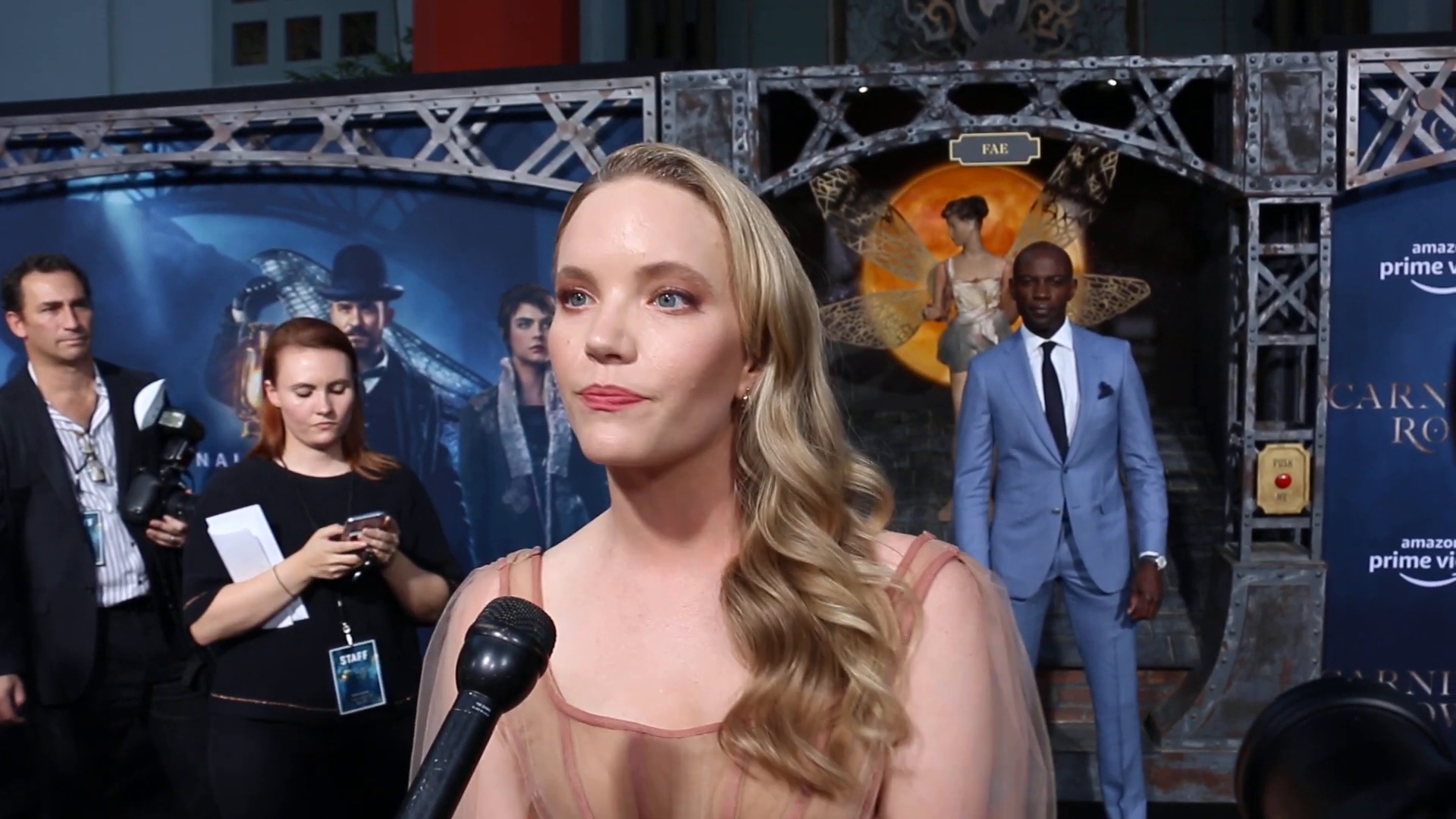 | Home > Screencaptures > TinseltownTV - Tamzin Talks Imogen at 'Carnival Row' Premiere |